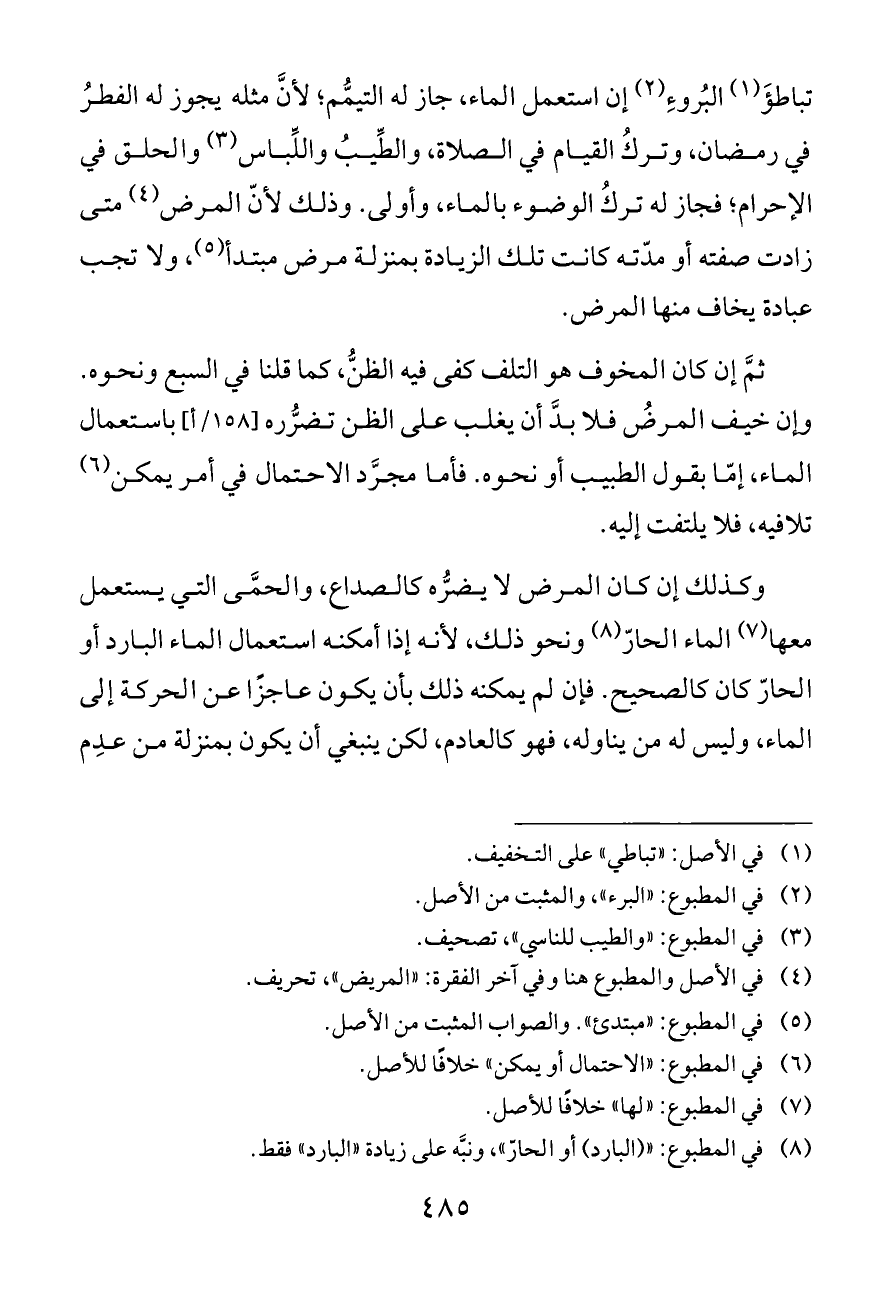 (¬٨) في المطبوع: «(البارد) أو الحارّ»، ونبَّه على زيادة «البارد» فقط.