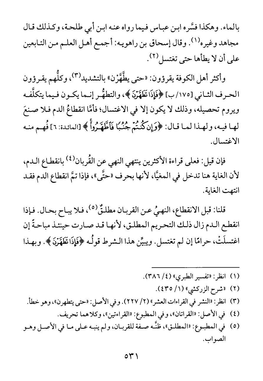 (¬٣) انظر: «النشر في القراءات العشر» (٢/ ٢٢٧). وفي الأصل: «حتى يتطهرن»، وهو خطأ.