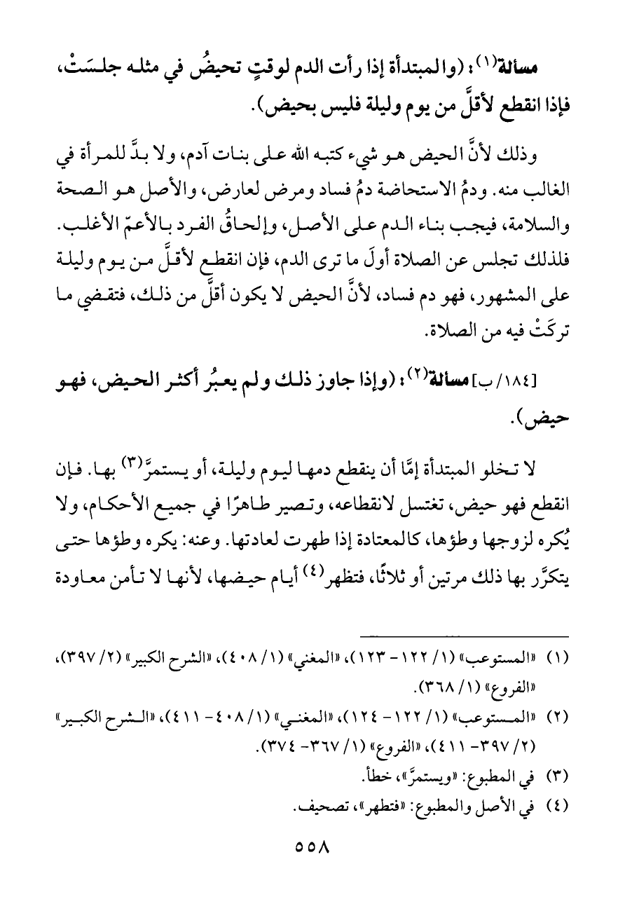(¬١) «المستوعب» (١/ ١٢٢ - ١٢٣)، «المغني» (١/ ٤٠٨)، «الشرح الكبير» (٢/ ٣٩٧)، «الفروع» (١/ ٣٦٨).