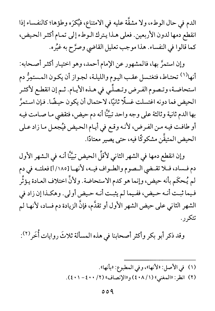(¬٢) انظر: «المغني» (١/ ٤٠٨) و «الإنصاف» (٢/ ٤٠٠ - ٤٠١).