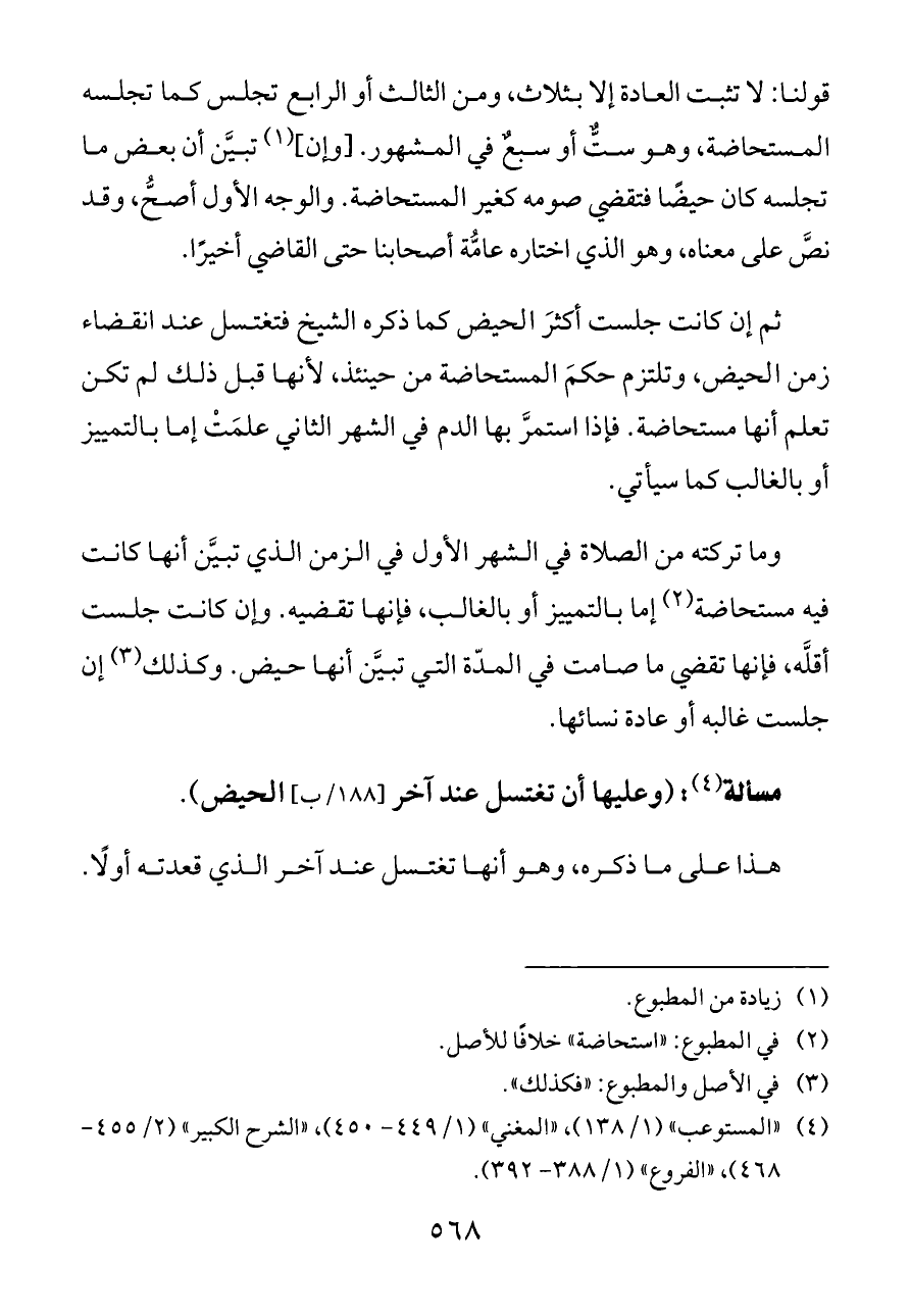 (¬٤) «المستوعب» (١/ ١٣٨)، «المغني» (١/ ٤٤٩ - ٤٥٠)، «الشرح الكبير» (٢/ ٤٥٥ - ٤٦٨)، «الفروع» (١/ ٣٨٨ - ٣٩٢).