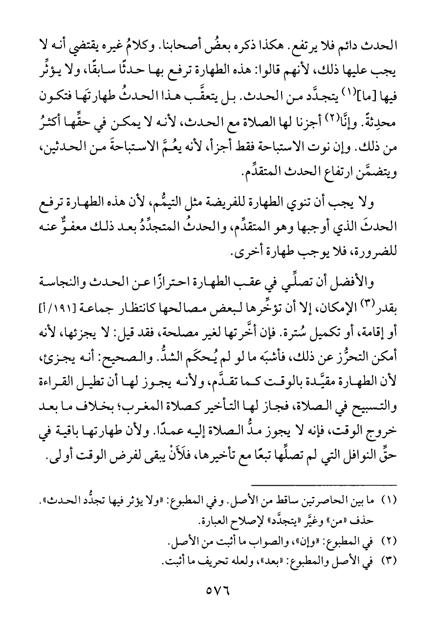 (¬١) ما بين الحاصرتين ساقط من الأصل. وفي المطبوع: «ولا يؤثر فيها تجدُّد الحدث». حذف «من» وغيَّر «يتجدَّد» لإصلاح العبارة.
