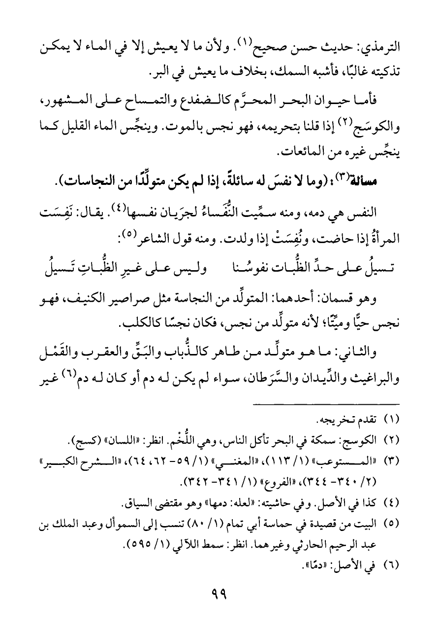 (¬٤) كذا في الأصل. وفي حاشيته: "لعله: دمها" وهو مقتضى السياق.