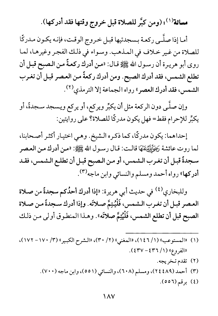 (¬١) «المستوعب» (١/ ١٤٦)، «المغني» (٢/ ٣٠)، «الشرح الكبير» (٣/ ١٧٠ - ١٧٢)، «الفروع» (١/ ٤٣٦ - ٤٣٧).
