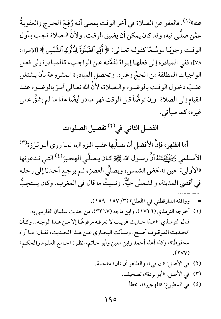 الفصل الثاني في (¬٢) تفصيل الصلوات