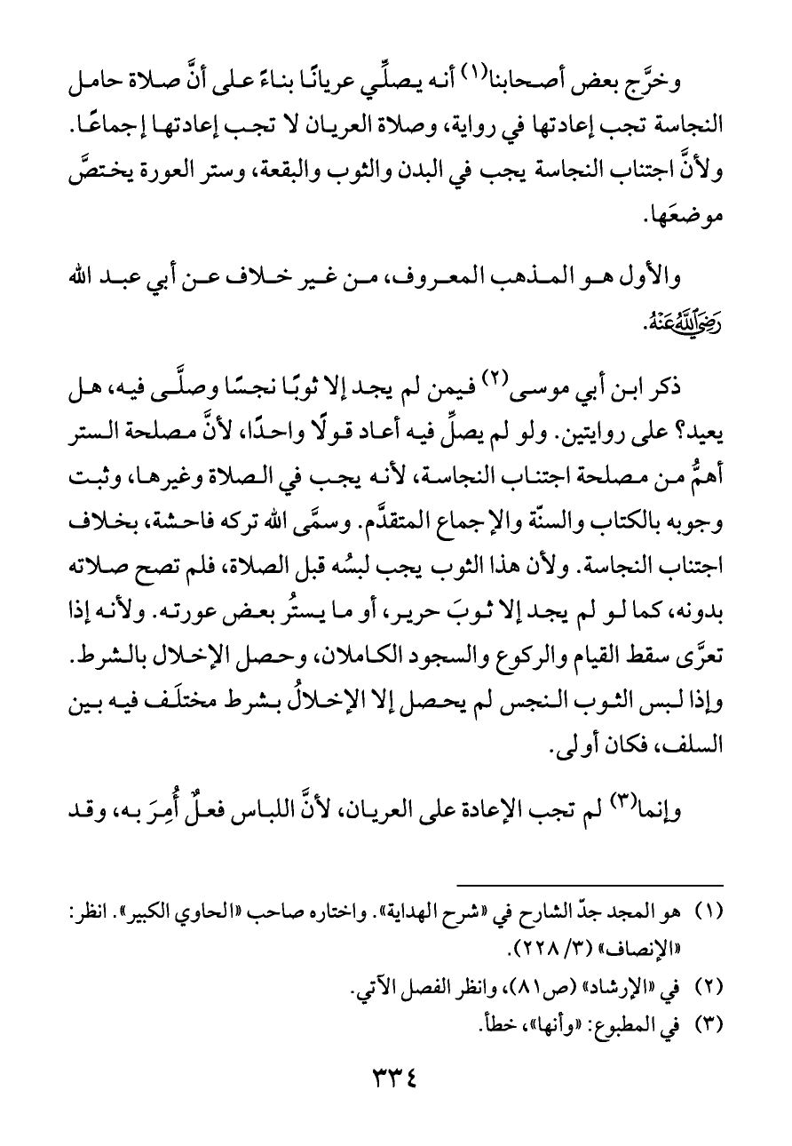 والأول هو المذهب المعروف، من غير خلاف عن أبي عبد الله - رضي الله عنه -.