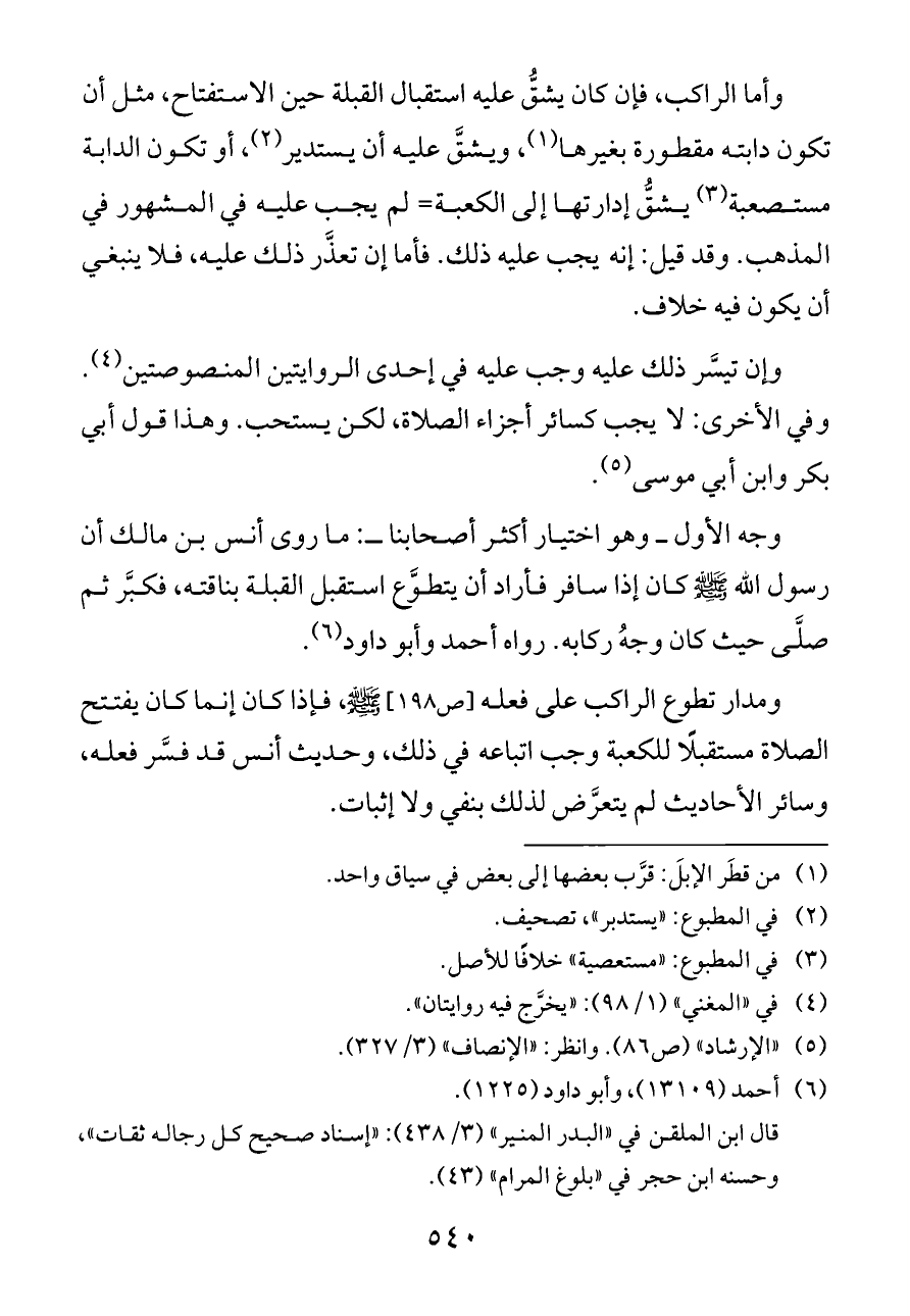 ومدار تطوع الراكب على فعله [ص ١٩٨]- صلى الله عليه وسلم -، فإذا كان إنما كان يفتتح الصلاة مستقبلًا للكعبة وجب اتباعه في ذلك، وحديث أنس قد فسَّر فعله، وسائر الأحاديث لم يتعرَّض لذلك بنفي ولا إثبات.