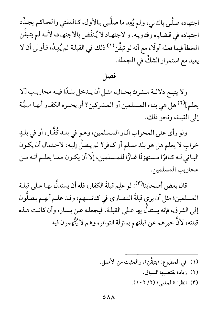 ولا يتبع دلالة مشرك بحال، مثل أن يدخل بلدًا فيه محاريب [لا يعلم] (¬٢) هل هي بناء المسلمين أو المشركين؟ أو يخبره الكفار أنها مبنيَّة إلى القبلة، ونحو ذلك.