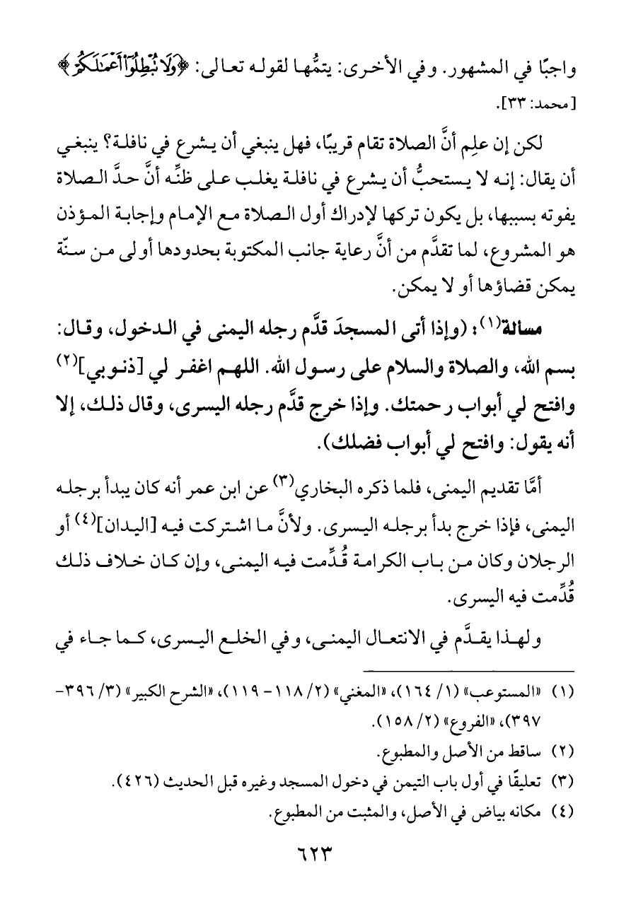 (¬١) «المستوعب» (١/ ١٦٤)، «المغني» (٢/ ١١٨ - ١١٩)، «الشرح الكبير» (٣/ ٣٩٦ - ٣٩٧)، «الفروع» (٢/ ١٥٨).