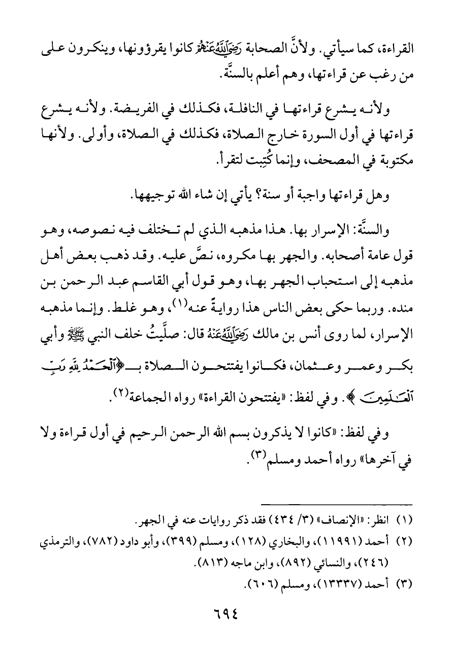 (¬١) انظر: «الإنصاف» (٣/ ٤٣٤) فقد ذكر روايات عنه في الجهر.