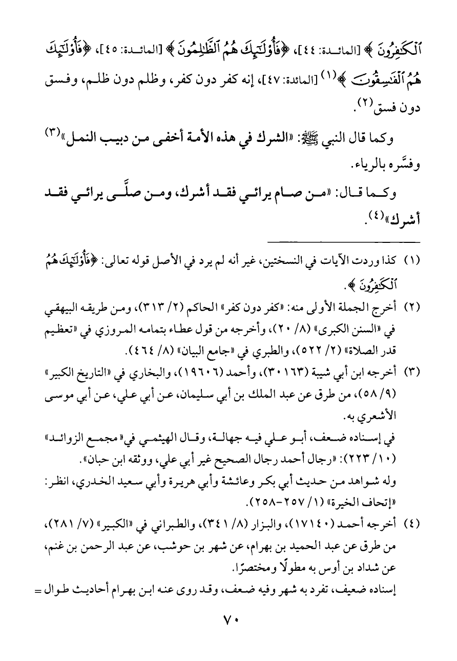 (¬١) كذا وردت الآيات في النسختين، غير أنه لم يرد في الأصل قوله تعالى: {فَأُولَئِكَ هُمُ الْكَافِرُونَ}.