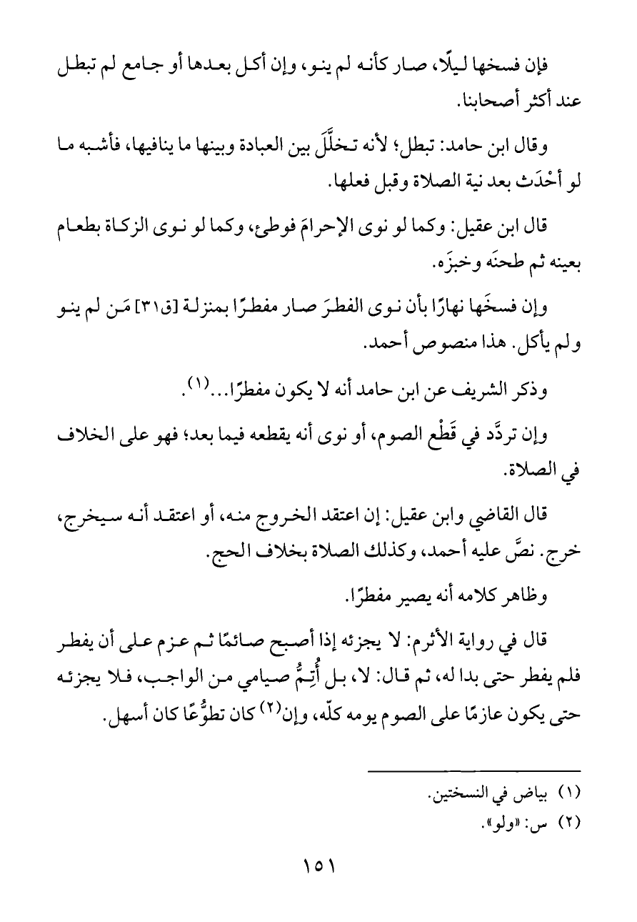 وإن فسخَها نهارًا بأن نوى الفطرَ صار مفطرًا بمنزلة [ق ٣١] مَن لم ينو ولم يأكل. هذا منصوص أحمد.