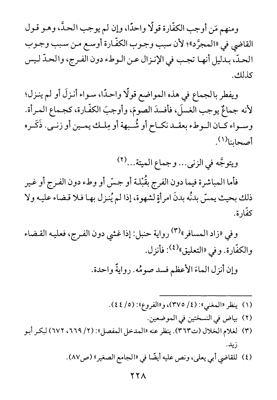 (¬١) ينظر «المغني»: (٤/ ٣٧٥)، و «الفروع»: (٥/ ٤٤).