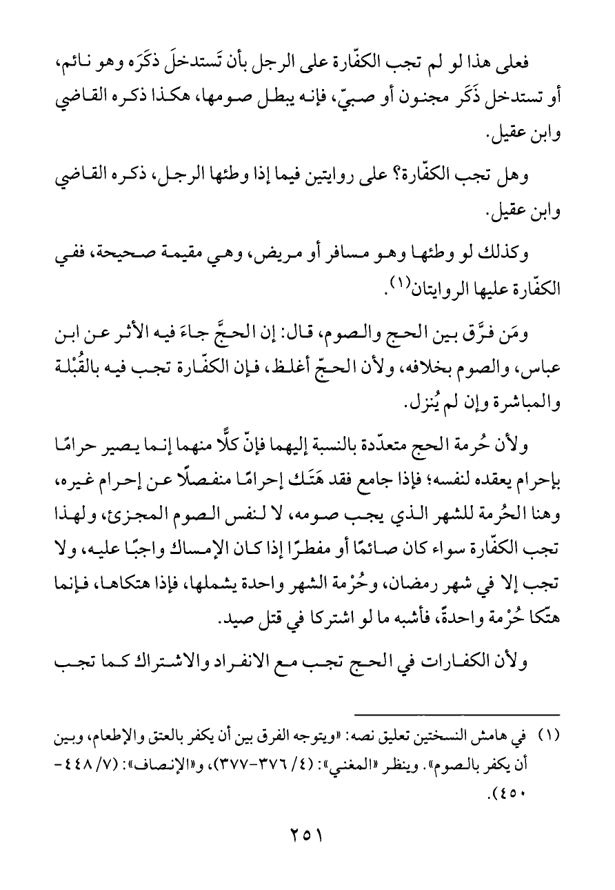 (¬١) في هامش النسختين تعليق نصه: «ويتوجه الفرق بين أن يكفر بالعتق والإطعام، وبين أن يكفر بالصوم». وينظر «المغني»: (٤/ ٣٧٦ - ٣٧٧)، و «الإنصاف»: (٧/ ٤٤٨ - ٤٥٠).