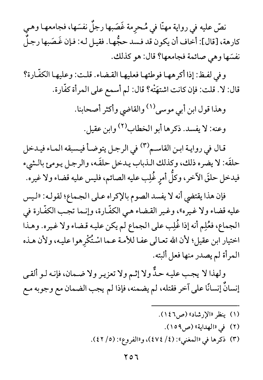 (¬٣) ذكرها في «المغني»: (٤/ ٤٧٤)، و «الفروع»: (٥/ ٤٢).