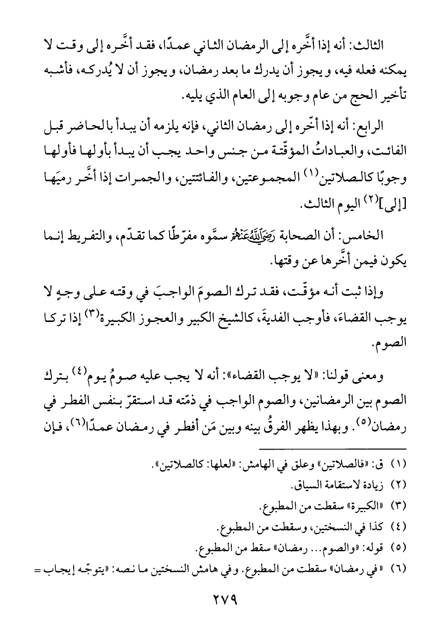 ومعنى قولنا: «لا يوجب القضاء»: أنه لا يجب عليه صومُ يوم (¬٤) بترك الصوم بين الرمضانين، والصوم الواجب في ذمّته قد استقرّ بنفس الفطر في رمضان (¬٥). وبهذا يظهر الفرقُ بينه وبين مَن أفطر في رمضان عمدًا (¬٦)، فإن