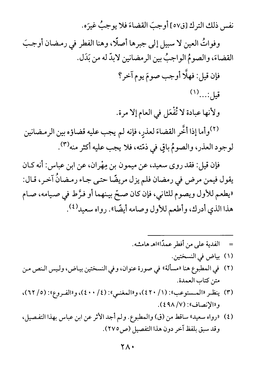 (¬٤). «رواه سعيد» ساقط من (ق) والمطبوع. ولم أجد الأثر عن ابن عباس بهذا التفصيل، وقد سبق بلفظ آخر دون هذا التفصيل (ص ٢٧٥).
