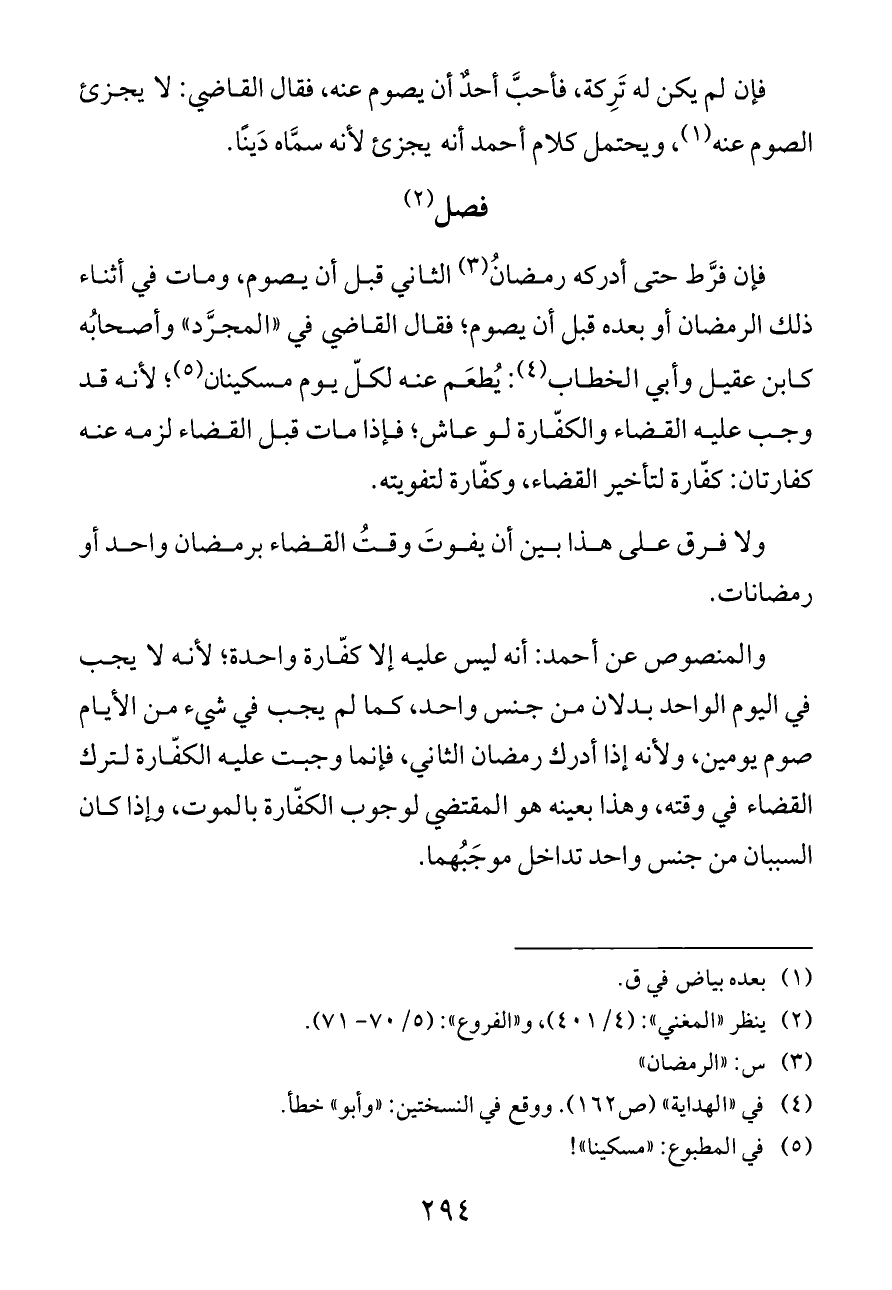 (¬٢) ينظر «المغني»: (٤/ ٤٠١)، و «الفروع»: (٥/ ٧٠ - ٧١).