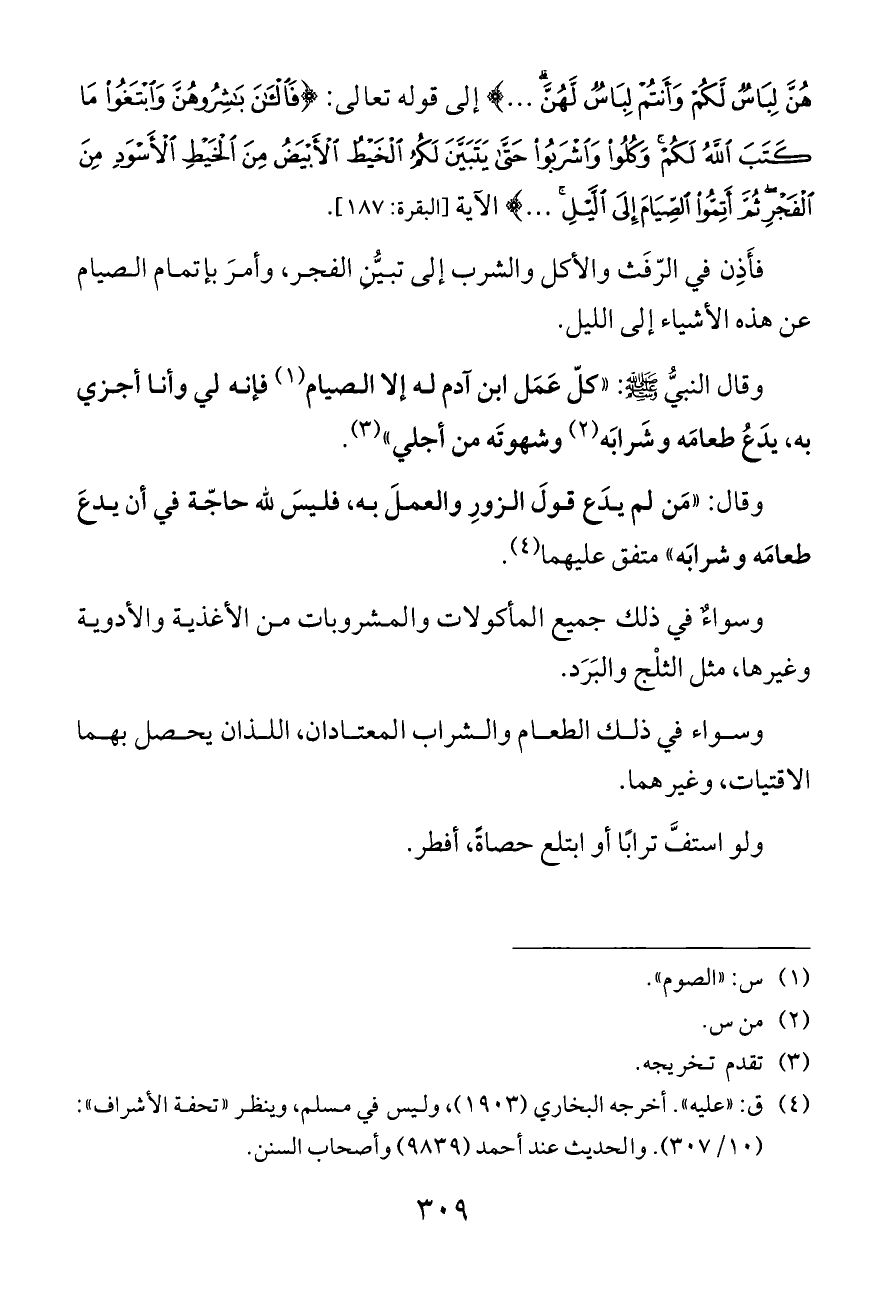 وسواءٌ في ذلك جميع المأكولات والمشروبات من الأغذية والأدوية وغيرها، مثل الثلْج والبَرَد.