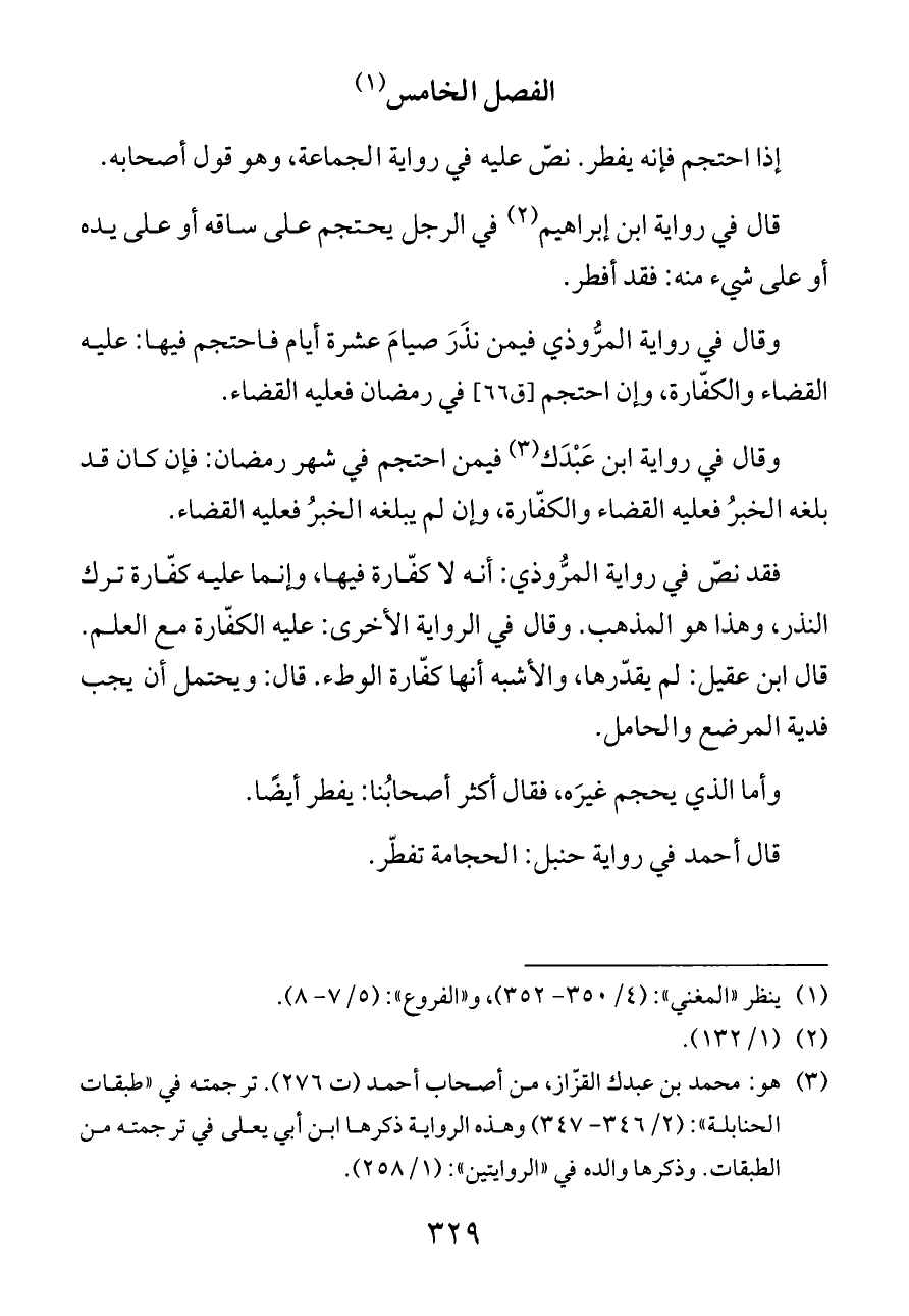 (¬١) ينظر «المغني»: (٤/ ٣٥٠ - ٣٥٢)، و «الفروع»: (٥/ ٧ - ٨).
