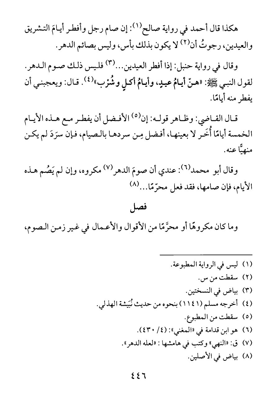 وقال أبو محمد (¬٦): عندي أن صومَ الدهر (¬٧) مكروه، وإن لم يَصُم هذه الأيام، فإن صامها، فقد فعل محرّمًا ... (¬٨)
