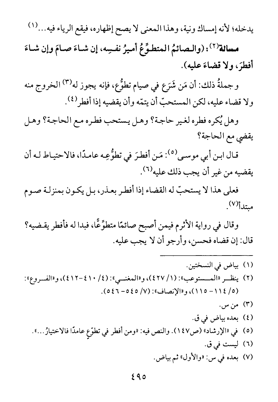 (¬٥) في «الإرشاد» (ص ١٤٧). والنص فيه: «ومن أفطر في تطوّعٍ عامدًا فالاختيارُ ... ».
