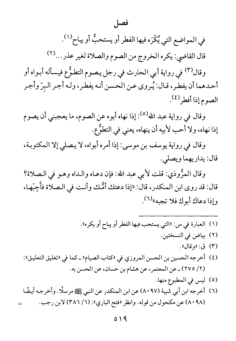 (¬١) العبارة في س: «التي يستحب فيها الفطر أو يباح أو يكره».