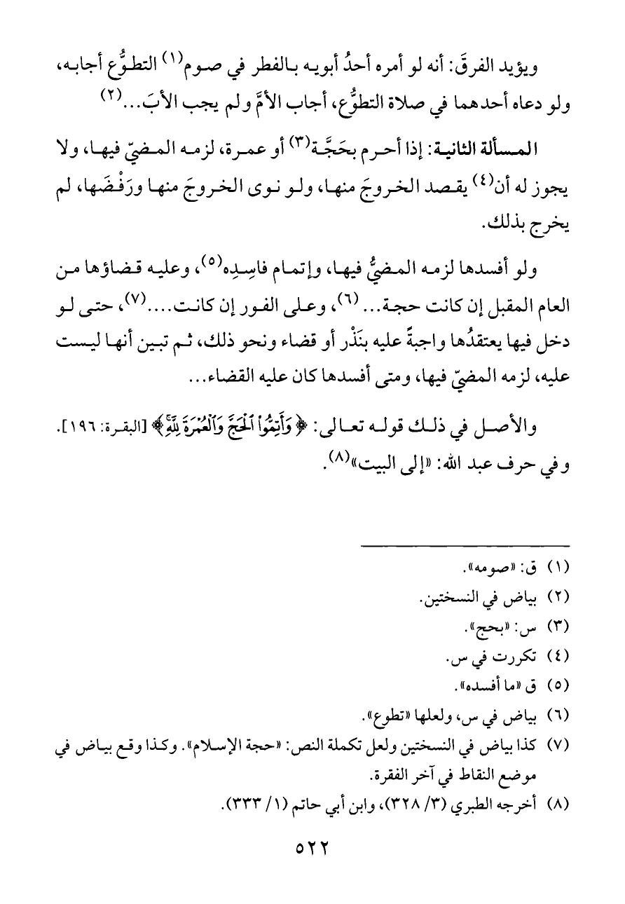 ويؤيد الفرقَ: أنه لو أمره أحدُ أبويه بالفطر في صوم (¬١) التطوُّع أجابه، ولو دعاه أحدهما في صلاة التطوُّع، أجاب الأمَّ ولم يجب الأبَ ... (¬٢)