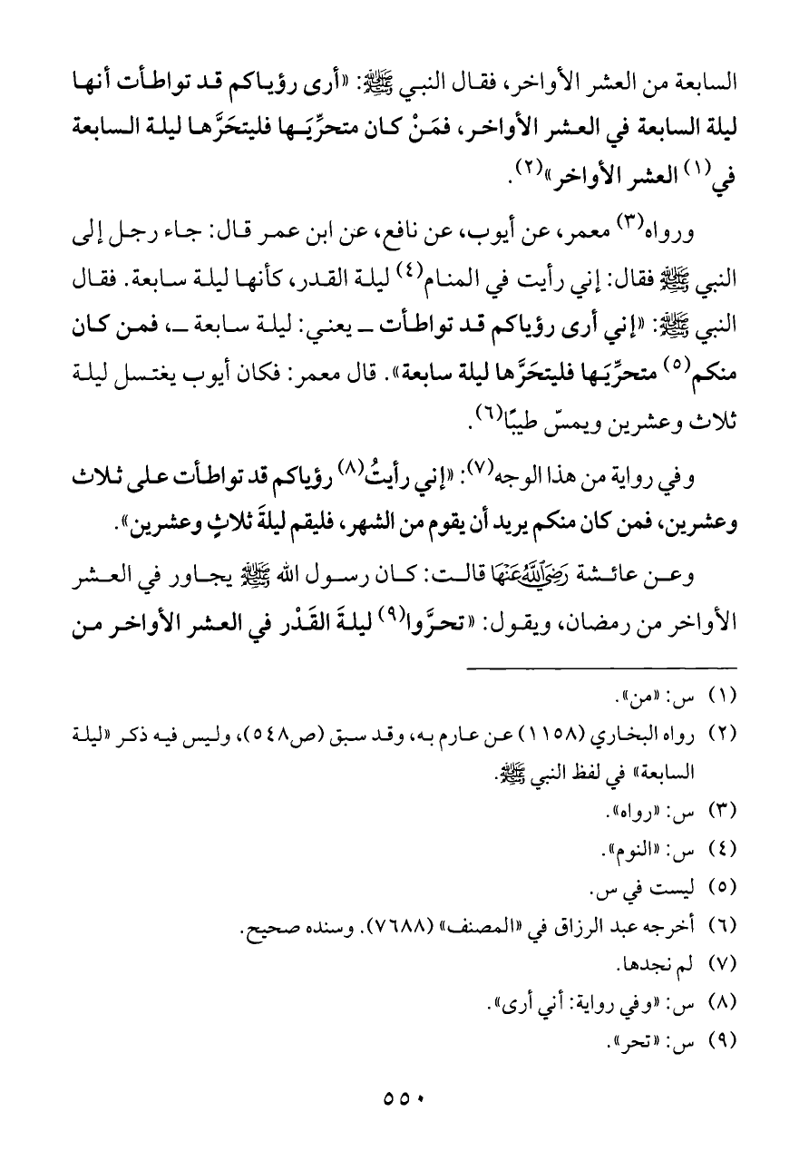 (¬٢) رواه البخاري (١١٥٨) عن عارم به، وقد سبق (ص ٥٤٨)، وليس فيه ذكر «ليلة السابعة» في لفظ النبي - صلى الله عليه وسلم -.