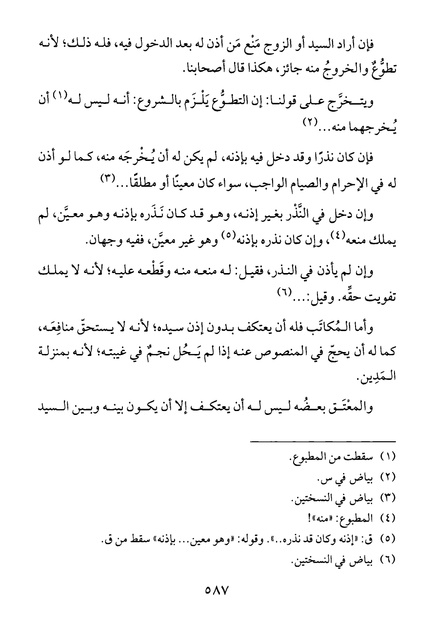 (¬٥) ق: «إذنه وكان قد نذره .. ». وقوله: «وهو معين ... بإذنه» سقط من ق.