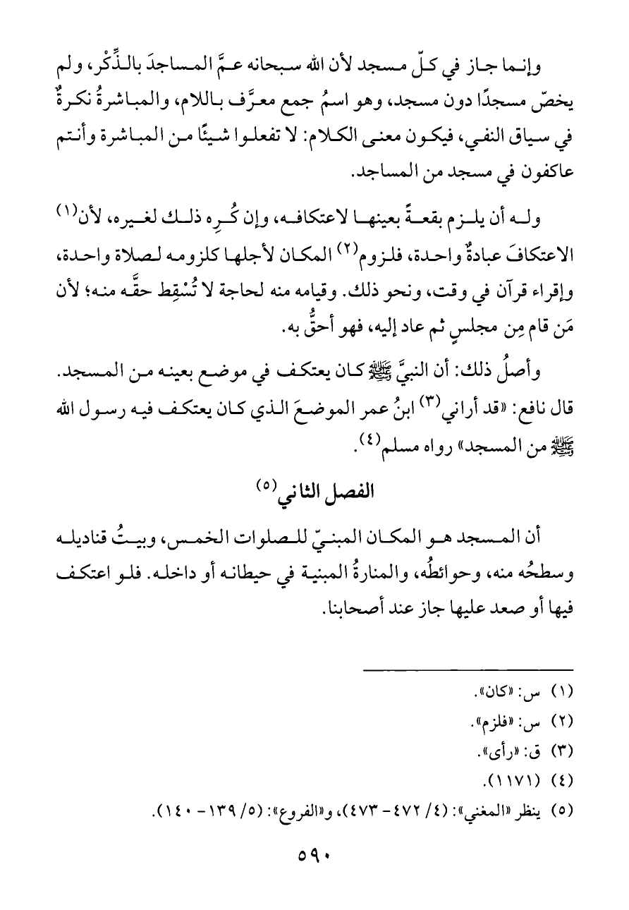 (¬٥) ينظر «المغني»: (٤/ ٤٧٢ - ٤٧٣)، و «الفروع»: (٥/ ١٣٩ - ١٤٠).