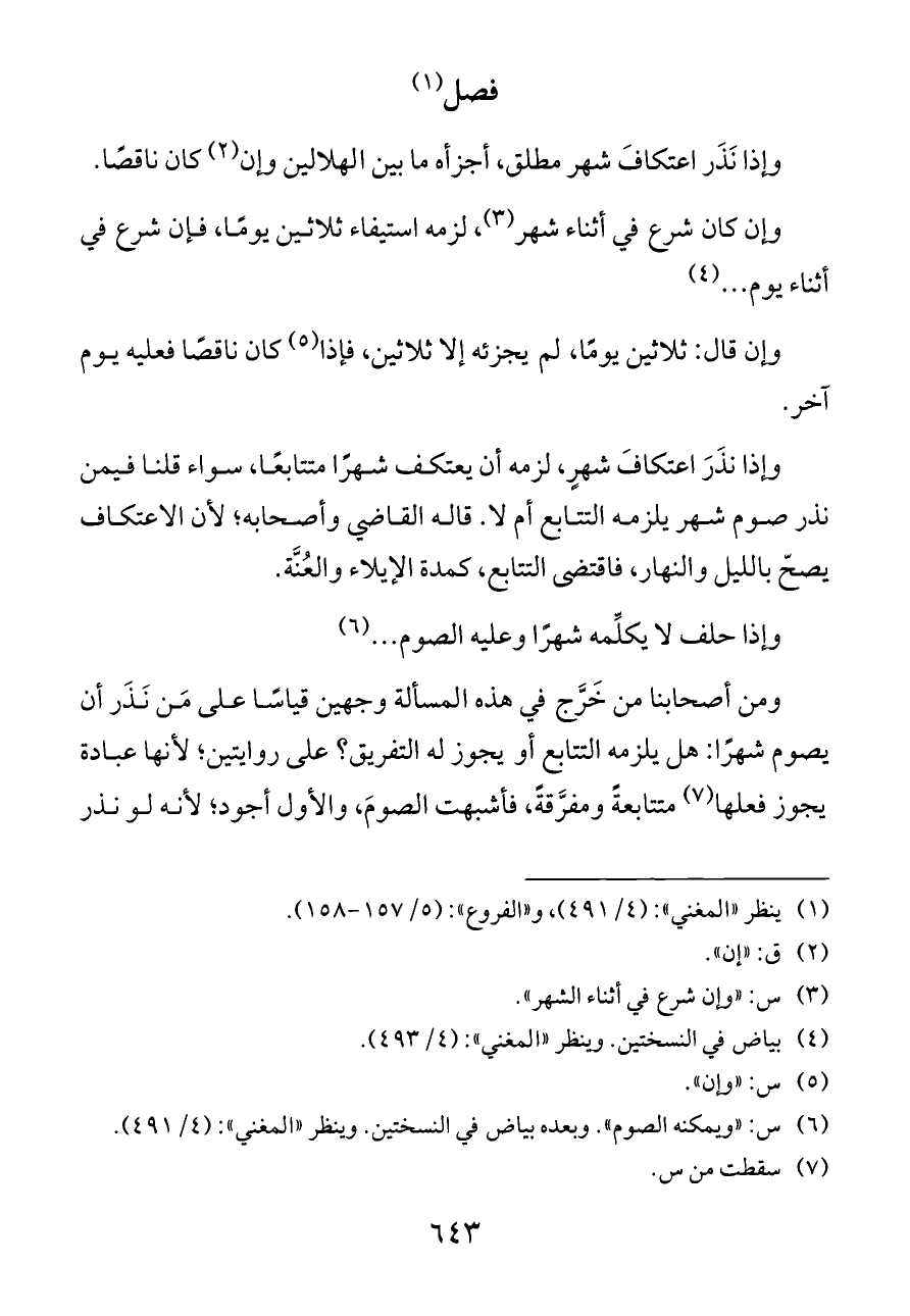 (¬١) ينظر «المغني»: (٤/ ٤٩١)، و «الفروع»: (٥/ ١٥٧ - ١٥٨).