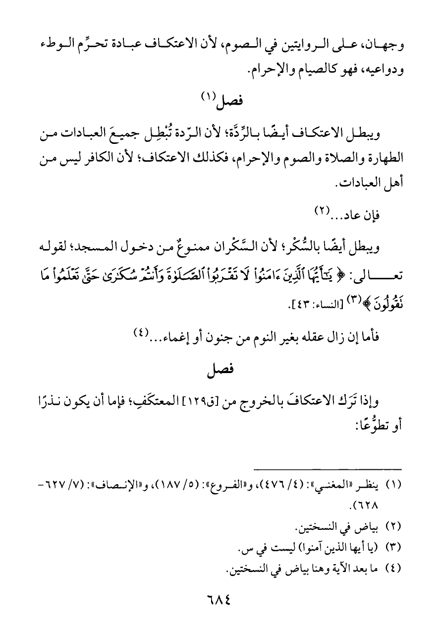 (¬١) ينظر «المغني»: (٤/ ٤٧٦)، و «الفروع»: (٥/ ١٨٧)، و «الإنصاف»: (٧/ ٦٢٧ - ٦٢٨).