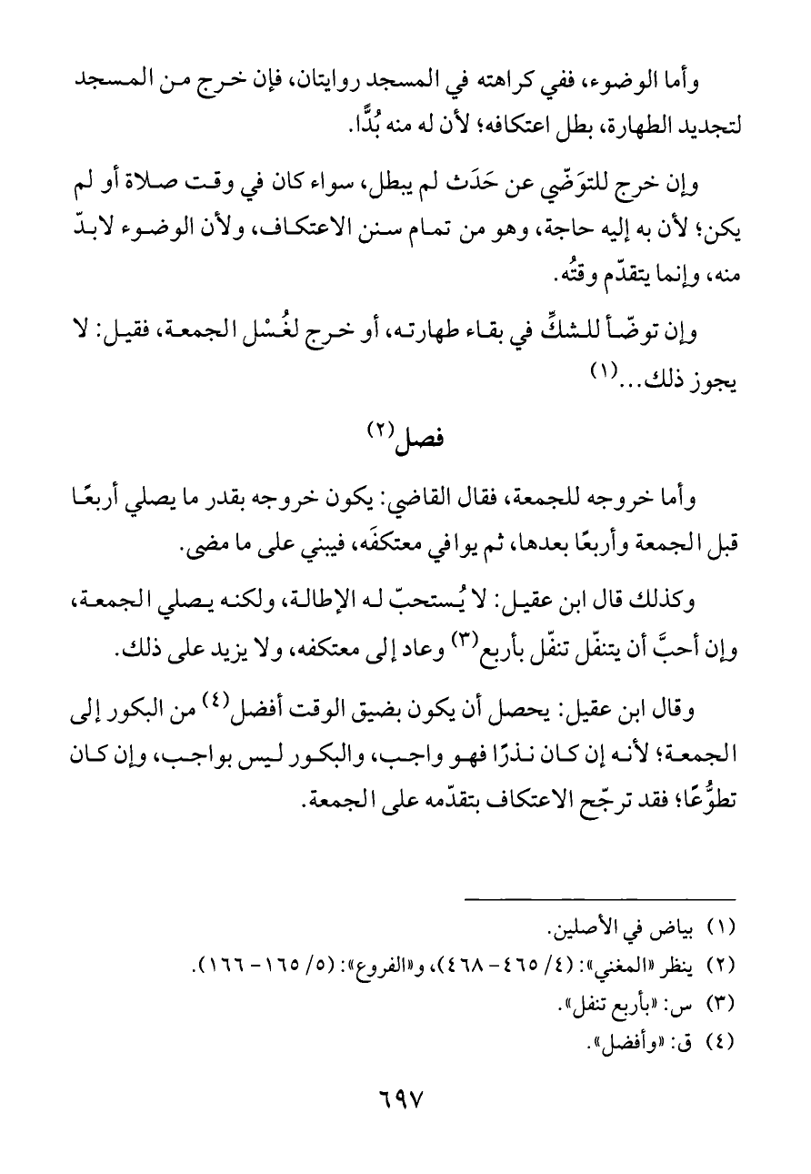 (¬٢) ينظر «المغني»: (٤/ ٤٦٥ - ٤٦٨)، و «الفروع»: (٥/ ١٦٥ - ١٦٦).