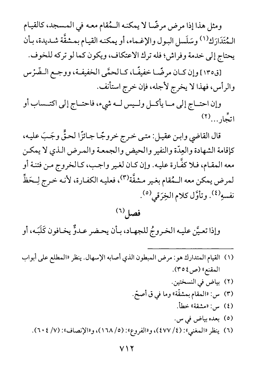 (¬٦) ينظر «المغني»: (٤/ ٤٧٧)، و «الفروع»: (٥/ ١٦٨)، و «الإنصاف»: (٧/ ٦٠٤).