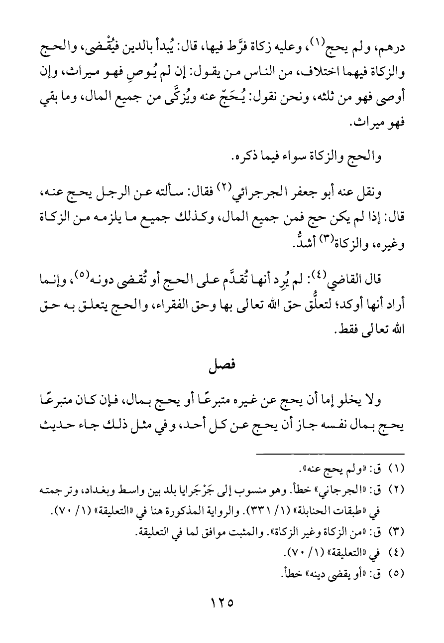 ونقل عنه أبو جعفر الجرجرائي (¬٢) فقال: سألته عن الرجل يحج عنه، قال: إذا لم يكن حج فمن جميع المال، وكذلك جميع ما يلزمه من الزكاة وغيره، والزكاة (¬٣) أشدُّ.