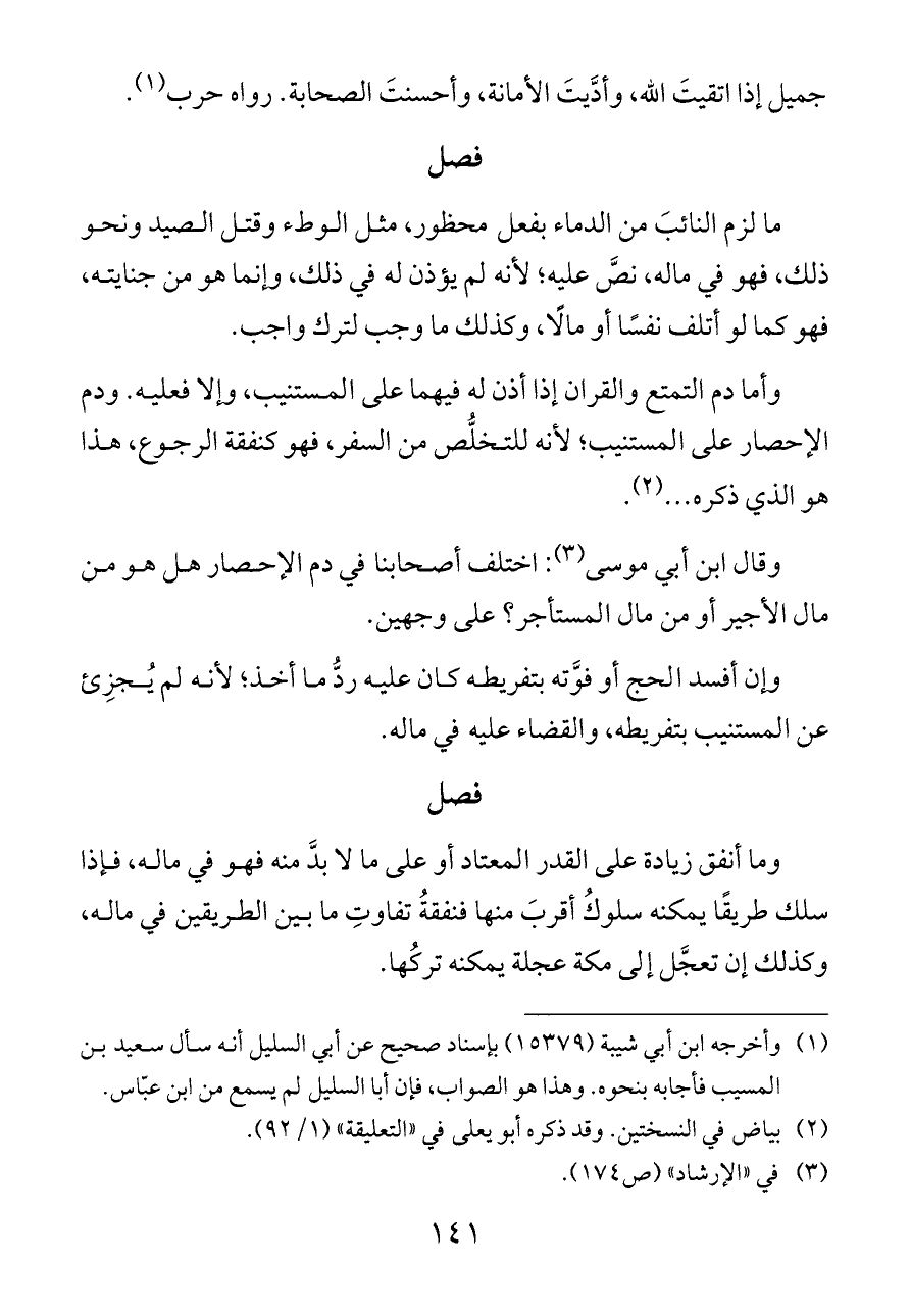 جميل إذا اتقيتَ الله، وأدَّيتَ الأمانة، وأحسنتَ الصحابة. رواه حرب (¬١).