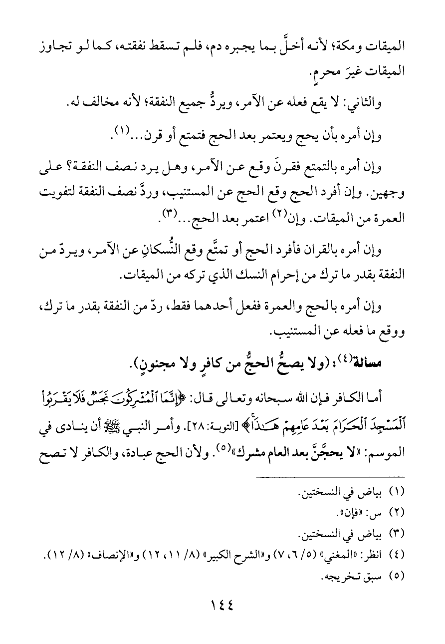 (¬٤) انظر: «المغني» (٥/ ٦، ٧) و «الشرح الكبير» (٨/ ١١، ١٢) و «الإنصاف» (٨/ ١٢).