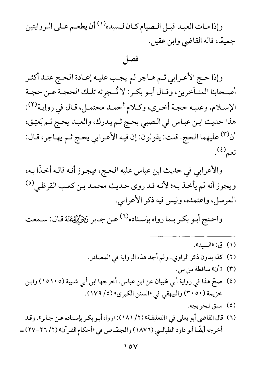وإذا حج الأعرابي ثم هاجر لم يجب عليه إعادة الحج عند أكثر أصحابنا المتأخرين، وقال أبو بكر: لا تُجزِئه تلك الحجة عن حجة الإسلام، وعليه حجة أخرى، وكلام أحمد محتمل، قال في رواية (¬٢): هذا حديث ابن عباس في الصبي يحج ثم يدرك، والعبد يحج ثم يَعتِق، أن (¬٣) عليهما الحج. قلت: يقولون: إن فيه الأعرابي يحج ثم يهاجر، قال: نعم (¬٤).