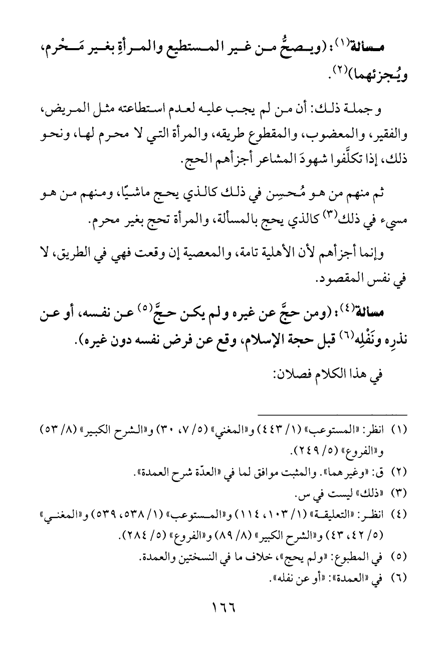 (¬١) انظر: «المستوعب» (١/ ٤٤٣) و «المغني» (٥/ ٧، ٣٠) و «الشرح الكبير» (٨/ ٥٣) و «الفروع» (٥/ ٢٤٩).