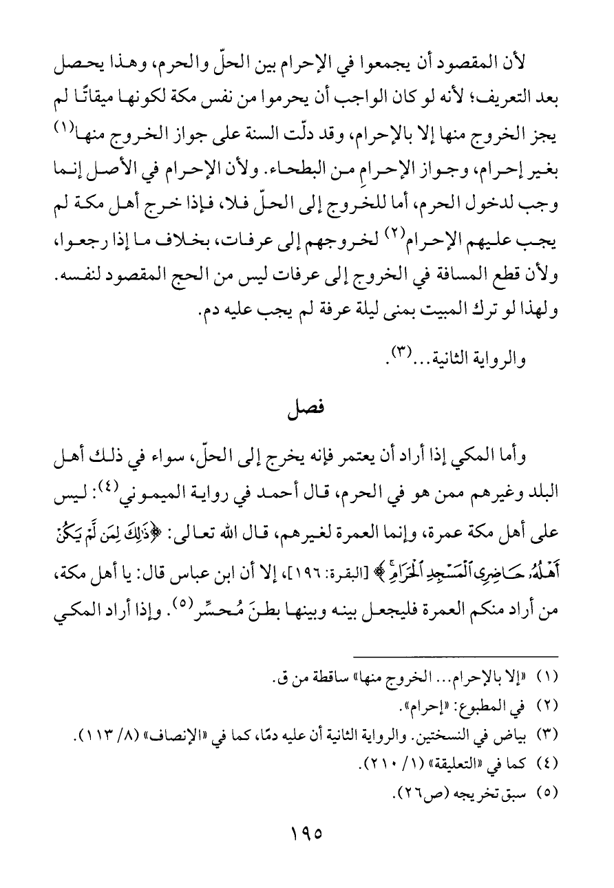 (¬١) «إلا بالإحرام ... الخروج منها» ساقطة من ق.