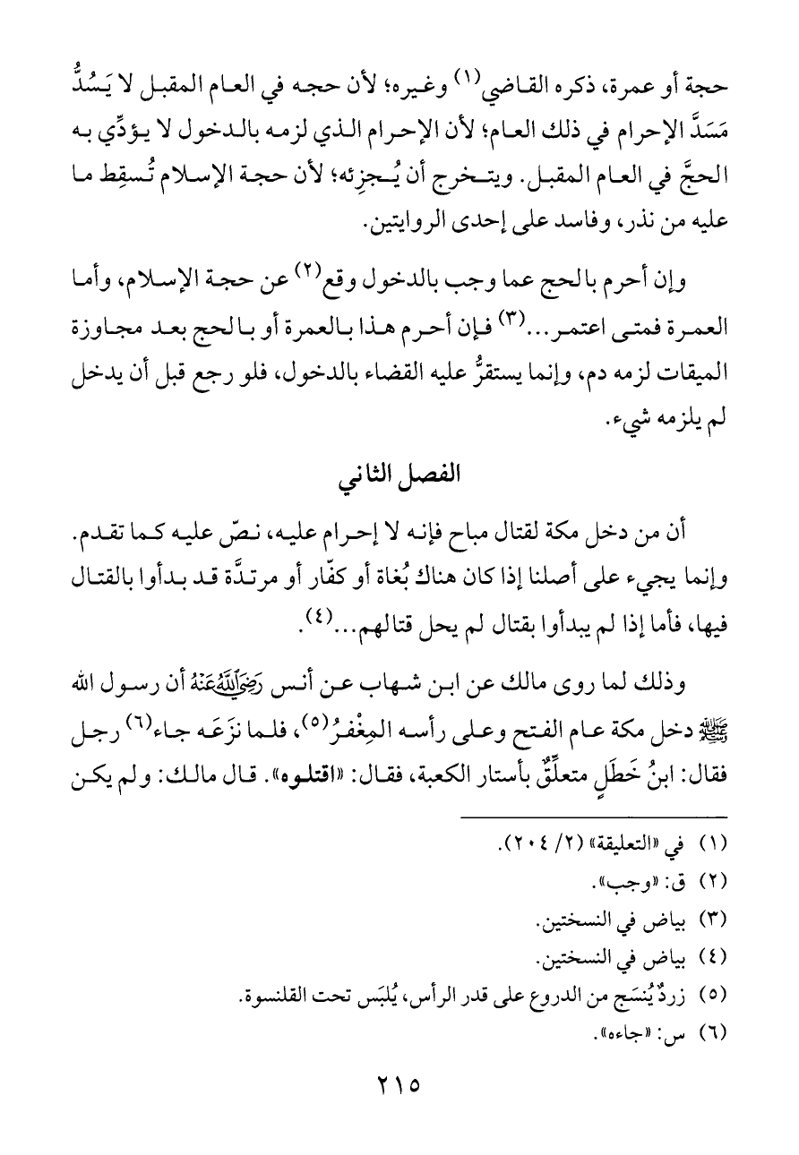 أن من دخل مكة لقتال مباح فإنه لا إحرام عليه، نصّ عليه كما تقدم. وإنما يجيء على أصلنا إذا كان هناك بُغاة أو كفّار أو مرتدَّة قد بدأوا بالقتال فيها، فأما إذا لم يبدأوا بقتال لم يحل قتالهم ... (¬٤).