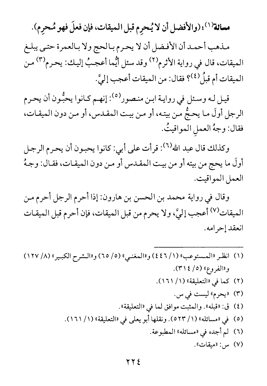 (¬٦) لم أجده في «مسائله» المطبوعة.