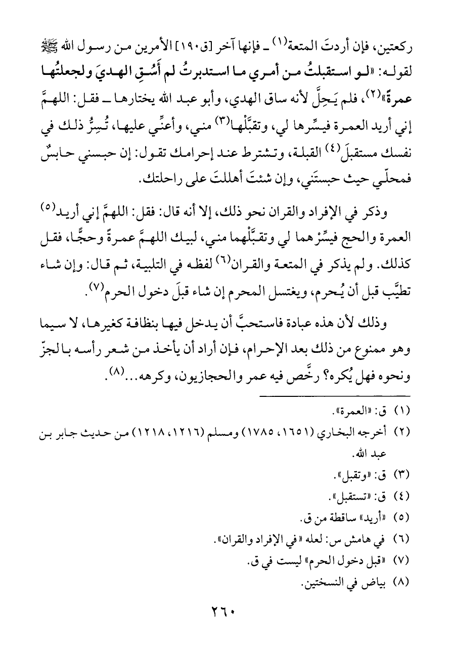(¬٦) في هامش س: لعله «في الإفراد والقران».