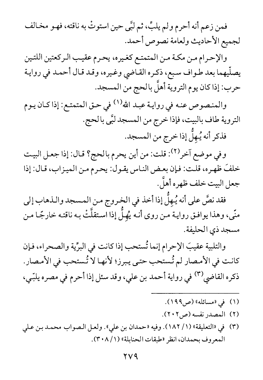 (¬٣) في «التعليقة» (١/ ١٨٢). وفيه «حمدان بن علي». ولعل الصواب محمد بن علي المعروف بحمدان، انظر «طبقات الحنابلة» (١/ ٣٠٨).