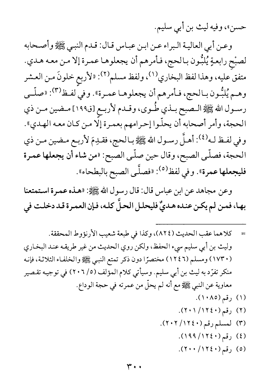 وعن أبي العالية البراء عن ابن عباس قال: قدم النبي - صلى الله عليه وسلم - وأصحابه لصبْحِ رابعةٍ يُلبُّون بالحج، فأمرهم أن يجعلوها عمرة إلا من معه هدي. متفق عليه، وهذا لفظ البخاري (¬١)، ولفظ مسلم (¬٢): «لأربعٍ خلونَ من العشر وهم يُلبُّون بالحج، فأمرهم أن يجعلوها عمرة». وفي لفظ (¬٣): «صلّى رسول الله - صلى الله عليه وسلم - الصبح بذي طُوى، وقدم لأربعٍ [ق ١٩٩] مضين من ذي الحجة، وأمر أصحابه أن يحلّوا إحرامهم بعمرة إلا من كان معه الهدي». وفي لفظ له (¬٤): أهلَّ رسول الله - صلى الله عليه وسلم - بالحج، فقدِمَ لأربع مضين من ذي الحجة، فصلّى الصبح، وقال حين صلّى الصبح: «من شاء أن يجعلها عمرة فليجعلها عمرة». وفي لفظ (¬٥): «فصلَّى الصبح بالبطحاء».