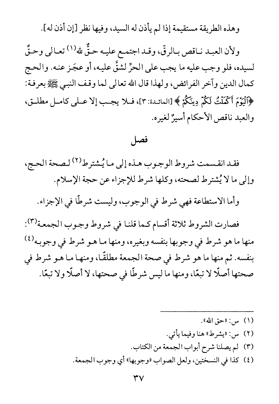 (¬٣) لم يصلنا شرح أبواب الجمعة من الكتاب.