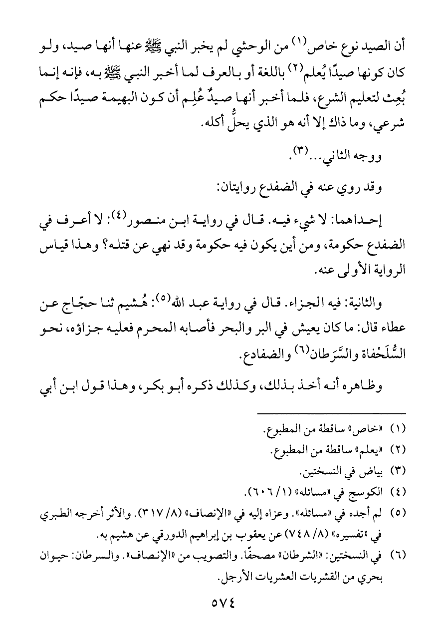 (¬٦) في النسختين: «الشرطان» مصحفًا. والتصويب من «الإنصاف». والسرطان: حيوان بحري من القشريات العشريات الأرجل.