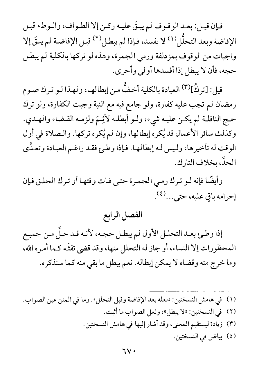 (¬١) في هامش النسختين: «لعله بعد الإفاضة وقبل التحلل». وما في المتن عين الصواب.