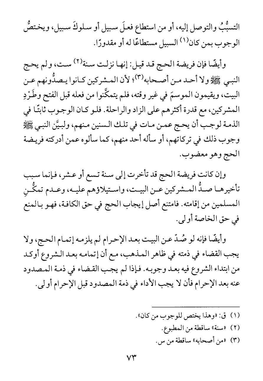 التسبُّبُ والتوصل إليه، أو من استطاع فعلَ سبيل أو سلوكَ سبيل، ويختصُّ الوجوب بمن كان (¬١) السبيل مستطاعًا له أو مقدورًا.